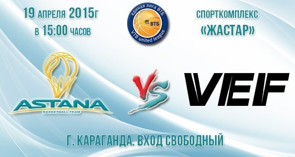 Легендарный рижский баскетбольный клуб едет в Караганду. 19 апреля в спортивном комплексе "Жастар" пройдет матч в рамках единой лиги ВТБ между баскетбольными клубами "Астана" и VEF (Рига). Начало встречи в 15:00, вход свободный.